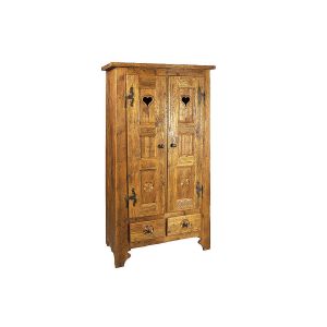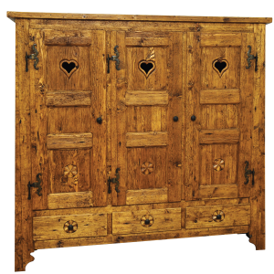 Armoire 2 portes en vieux bois, fermeture chaine fer forgé